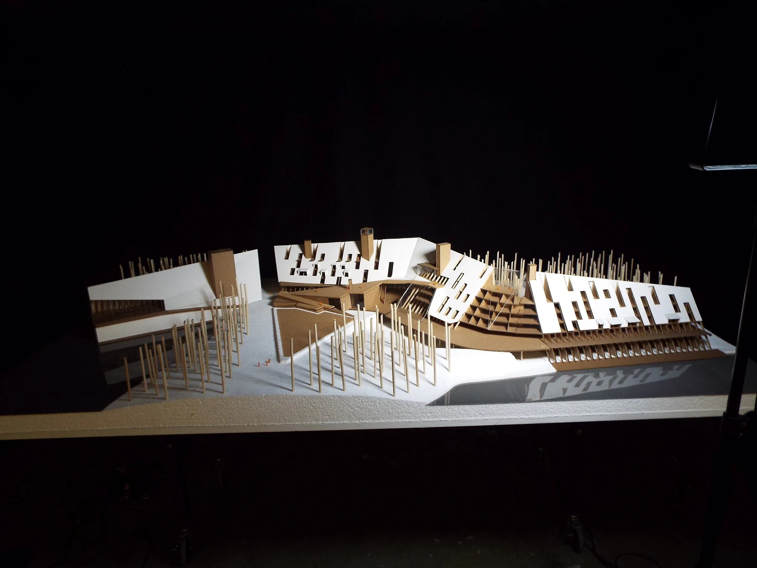 To showcase our design, I built and photographed the shown model, sized at 4’x8’. The model was built using the 5 axis Onsrud, Laser cutting, and hand tools. I served as the primary planner, and fabricator for the model in our group of 3.